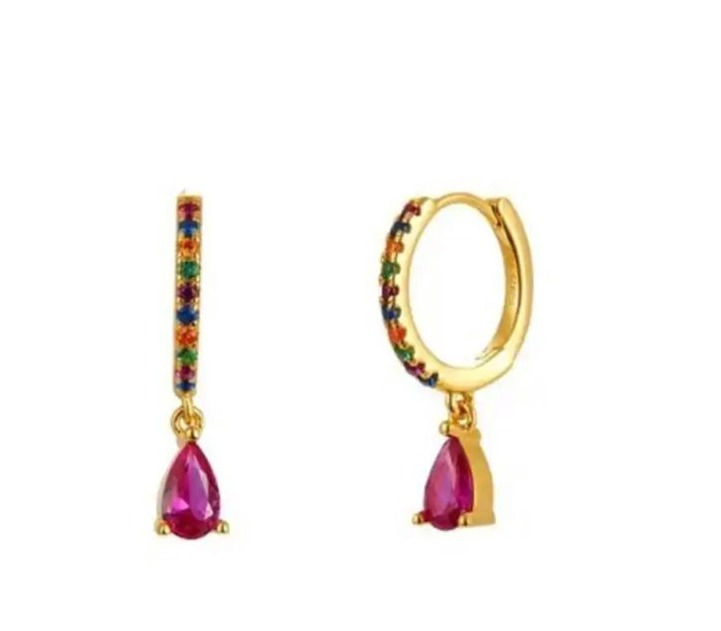 ARETES DORADOS CON CORAZON ROJO